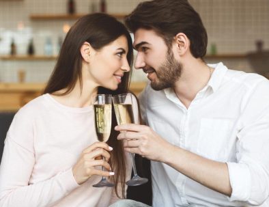 Presenečenje za romantično sprostitev – penina, bonboniera in dišeča svečka za ustvarjanje sproščenega, počasnega večera.